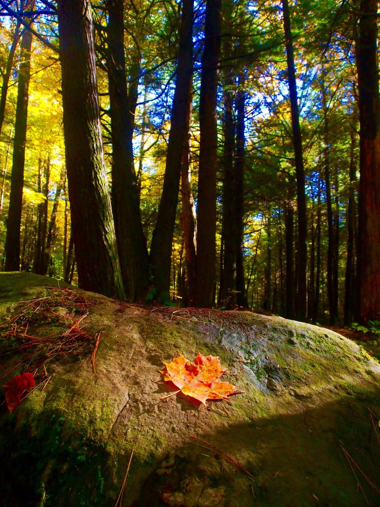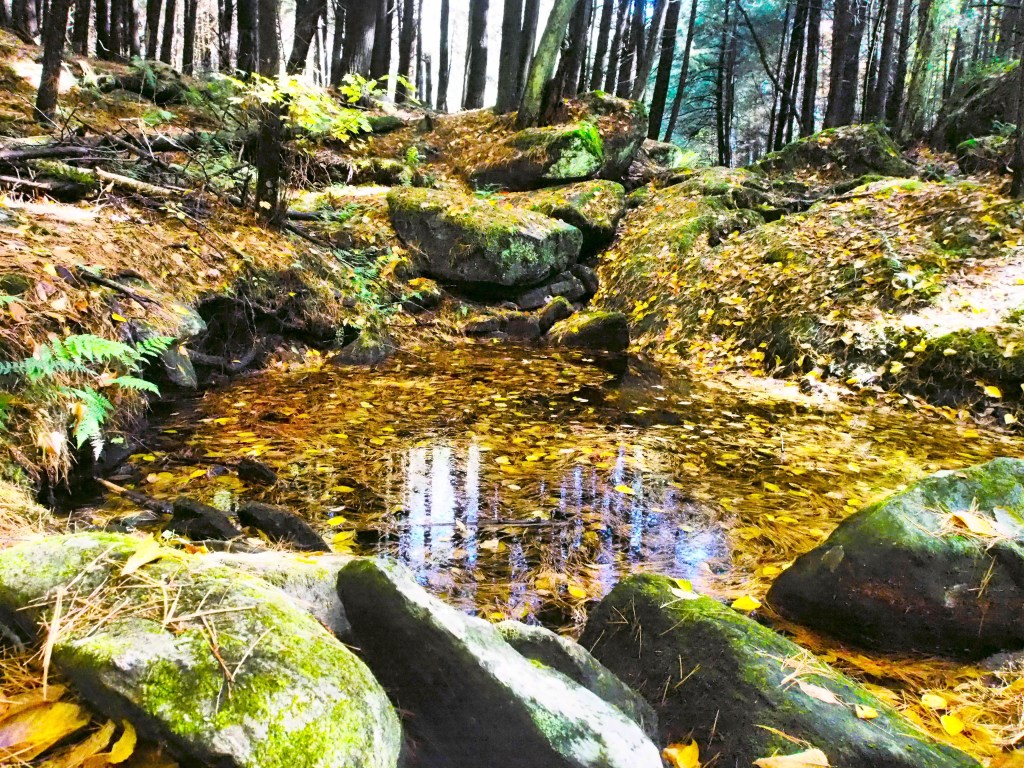 The moment I heard the flow of water I went off trail and slipped down the bank towards the babbling brook and for some reason was entranced by a pool filled with pine needles and leaves with light reflecting the trees in its center. I just sat for a while appreciating all the forest had to offer.