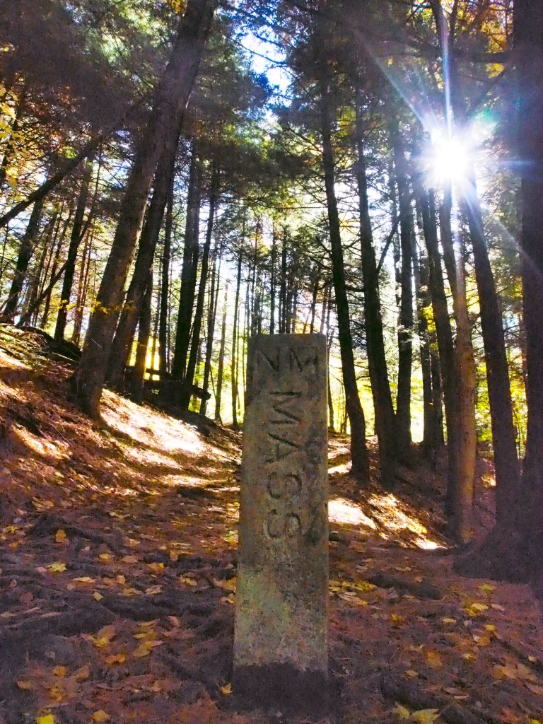 The fun part of taking the hike from the CT side is that shortly you come upon a stone border marker between CT and Mass! Photo op!
