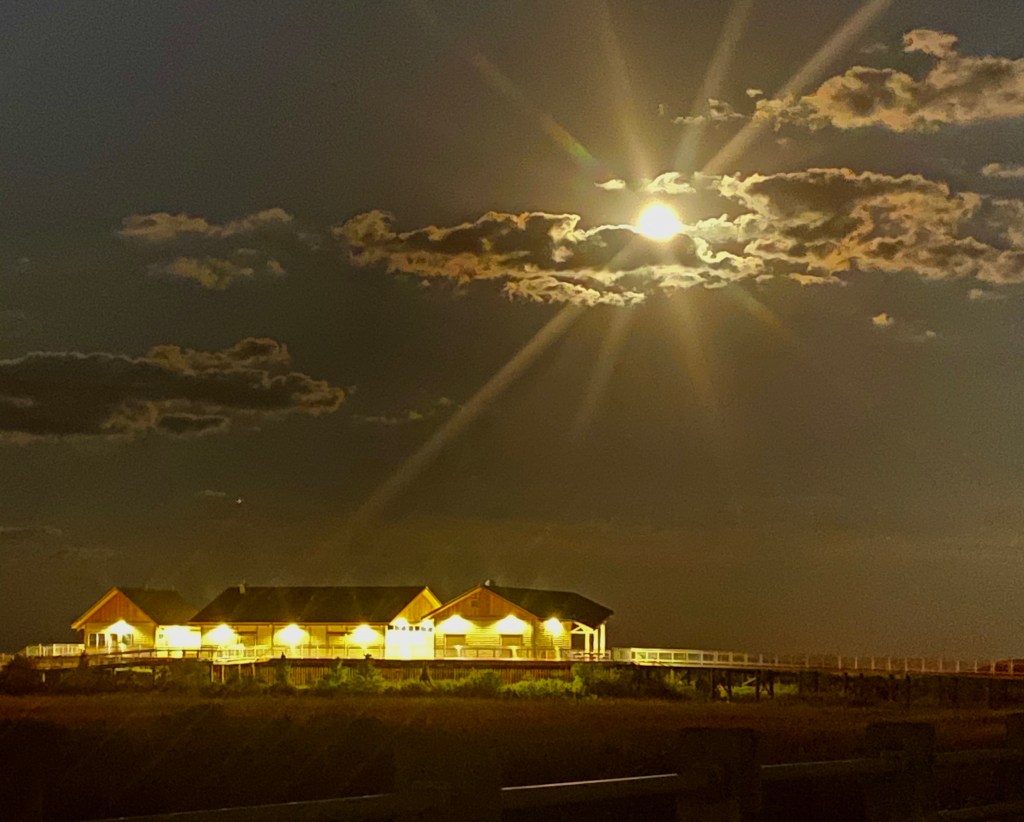 Please recognize that there is no biking on the Boardwalk but before and after it is part of my coastal ride. I just walk with it or lock it up when I reach Silver Sands. This park is 100% fee free and is open to the public year round. Please also note there is a gate that locks at dusk (yes I know this from experience when I took the moon rise above)
