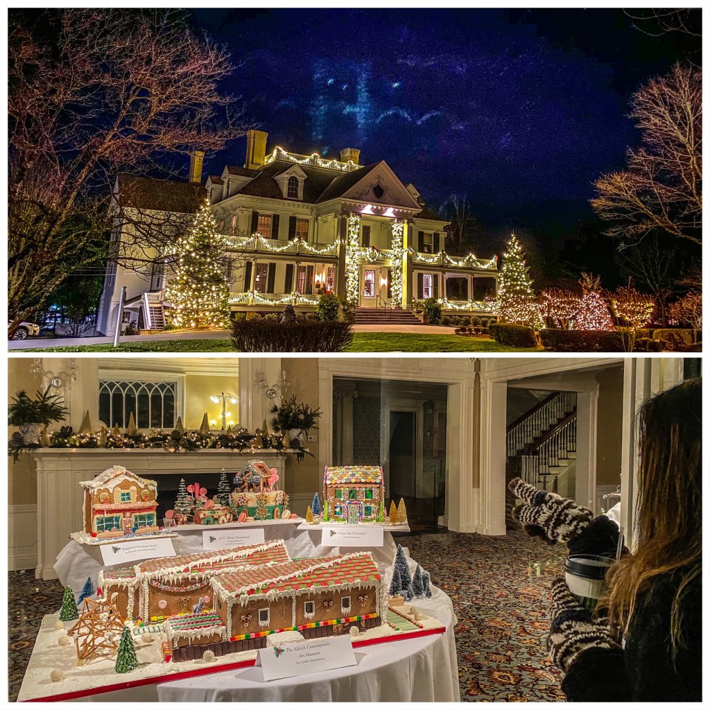 The Lounsbury House was where I went to my final group event before Covid wave one. A wonderful mystery dinner with a friend. I was so pleasantly surprised to find that today, in addition to their beautifully holiday decorated venue, was an outdoor gingerbread house walk where you could see locally created gingerbread houses on window display. I only included one shot so as not to ruin the surprises!