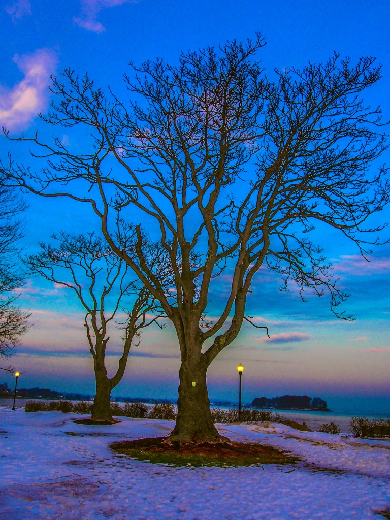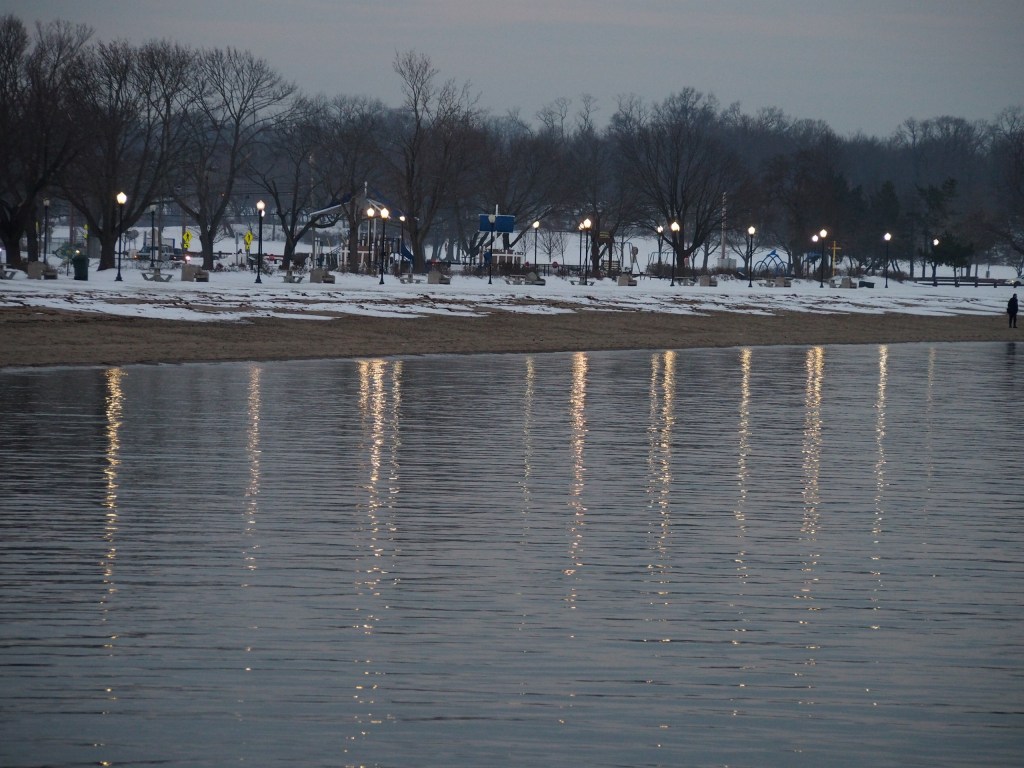While there was still deep snow around, there were several fisherman fishing off the rocks and the dock. It was a funny sky. On one side were these heavy clouds as the sun set and the other side appeared quite clear. I was hopeful to see the Bethlehem star.