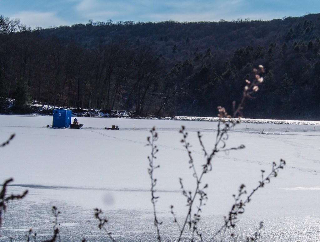 I made a second stop nearby along the lake at Kettletown State Park where I saw someone ice fishing! While the ice seemed thick I can’t imagine how he got himself set up out there!