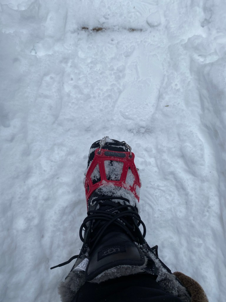 I had been to Enders Falls once before in 2020 in the summer and recognized I would return notwithstanding the drive. It’s part of the larger Enders Forest but if you want to see only the falls it’s a short hike from the lot. Given the amount of snow and there are stairs that are snowed over, I found my micro spikes a necessity.