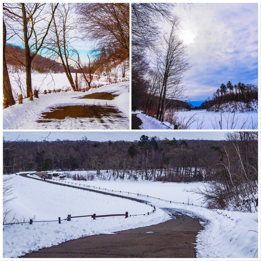 We parked in Hubbard Park by the playground and headed up the main road which is gated off season to the cars. The road was a bit icy so I would walk on the side of the road where there was more snow for traction.