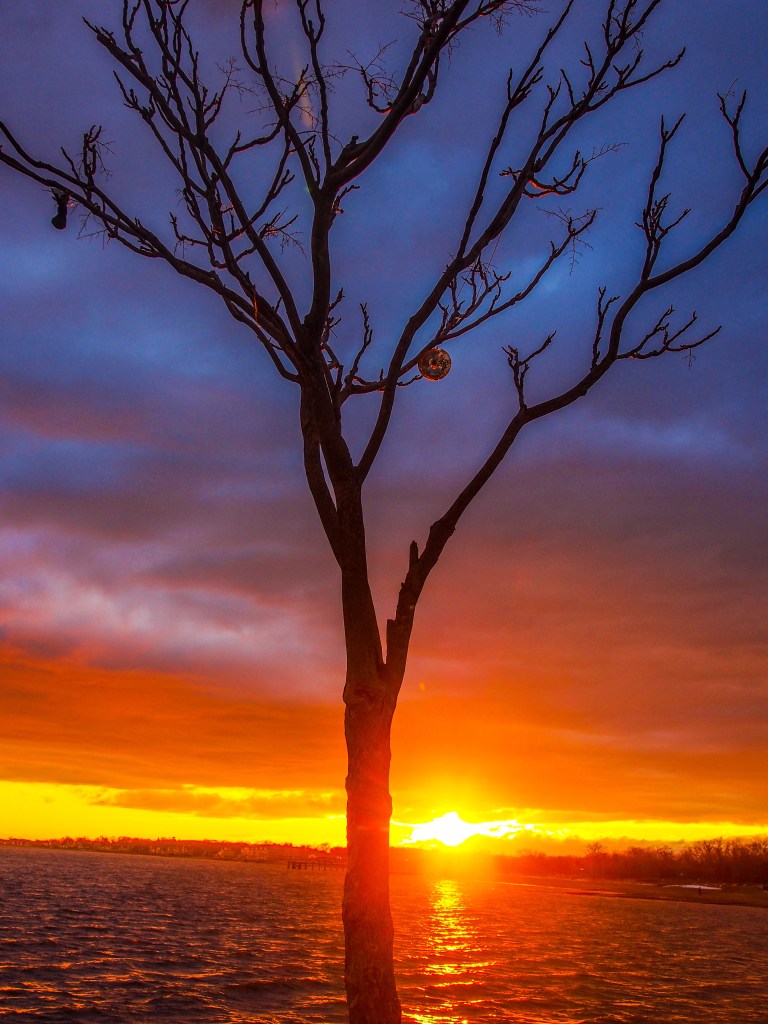 I arrived to the clouds almost touching the horizon and walked towards Silver Sands to the famous lone tree just as the sun briefly appeared.