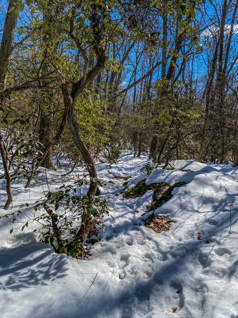 This was a short moderate hike at times in the ice and snow with several rewards with the mount laurel grove, thawing icicles, the overlook and the challenge of ensuring you didn’t fall into the meandering brook!