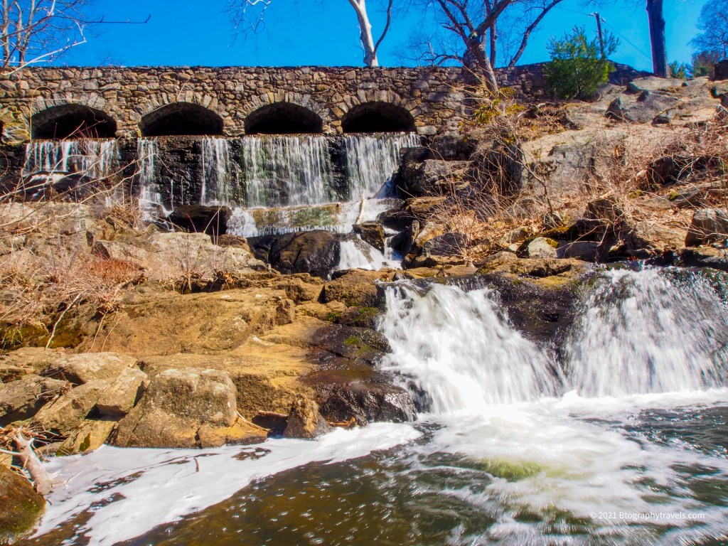 5 stone archways make up the bridge. Part natural and part man made by the Case family who owned a paper mill.