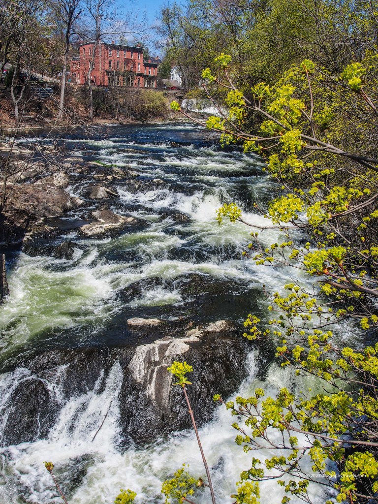 The falls are worth walking across the town bridge over to each side to get a different angle of its beauty. Being spring time it was roaring so I included a little video to share.