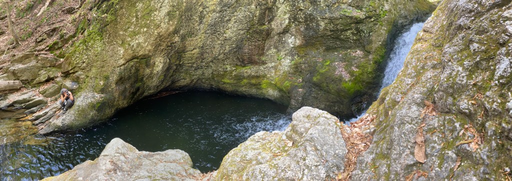 I was surprised to find the cavernous setting of the waterfall. The above photo is a panoramic of the cavern I’m actually all the way to the left to better gauge the size.