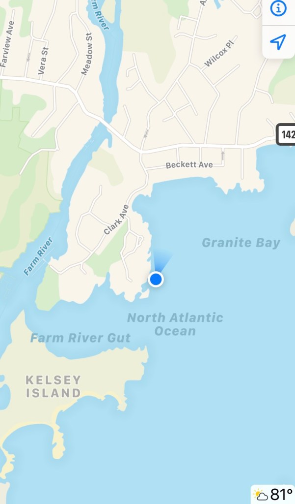 I then turned into Farm River gut into Granite Bay. Lovely rock formations and cliff side shores until you find a small local neighborhood beach which appears to have been on Clark Avenue. I stopped for a bit of a respite.