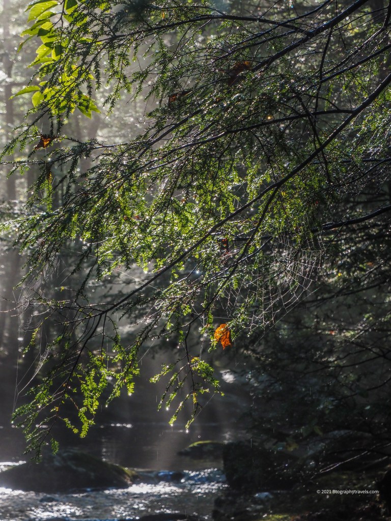 A slow pace offers opportunity to share in the spider’s view of the sun’s rays upon the mossy rocks.