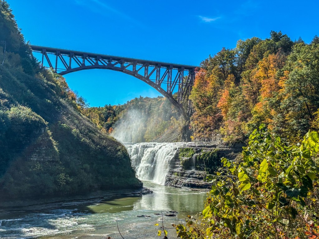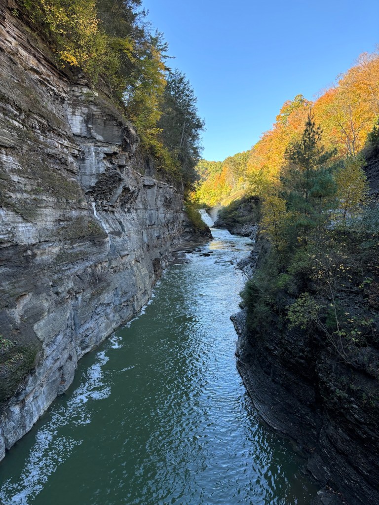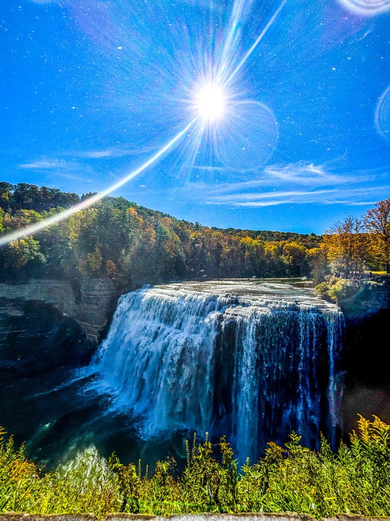After a day climbing the stairs at Watkins Glen we were looking forward to the respite of driving around to the Falls. The lower falls does require a short hike down some stairs with a couple of options for views. One from a bridge as seen below and one closer. It was more majestic from the bridge given the rock wall and forest. .