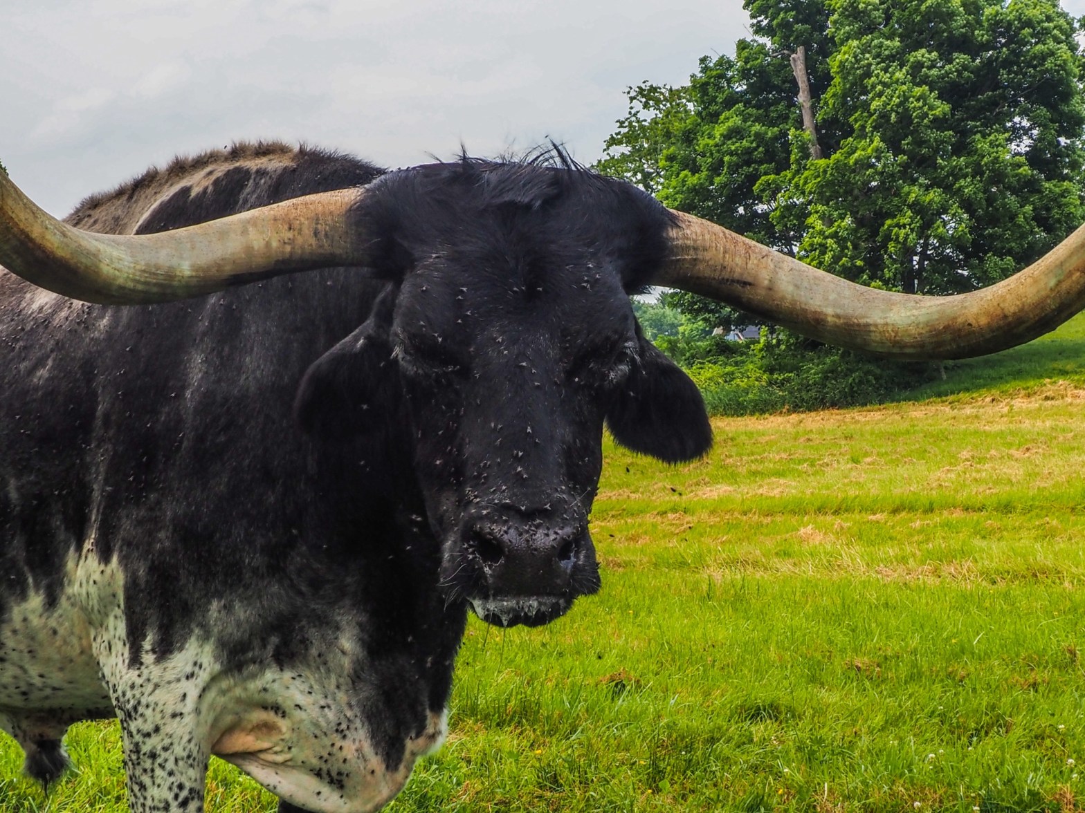 Sometimes it’s easier to trust animals than humans, Bud shared. Today it was reversed for me (city gal) as I ran from Wyatt, the sweetest Texas Longhorn who lives on Comanche Hill Farm in Bridgewater.
