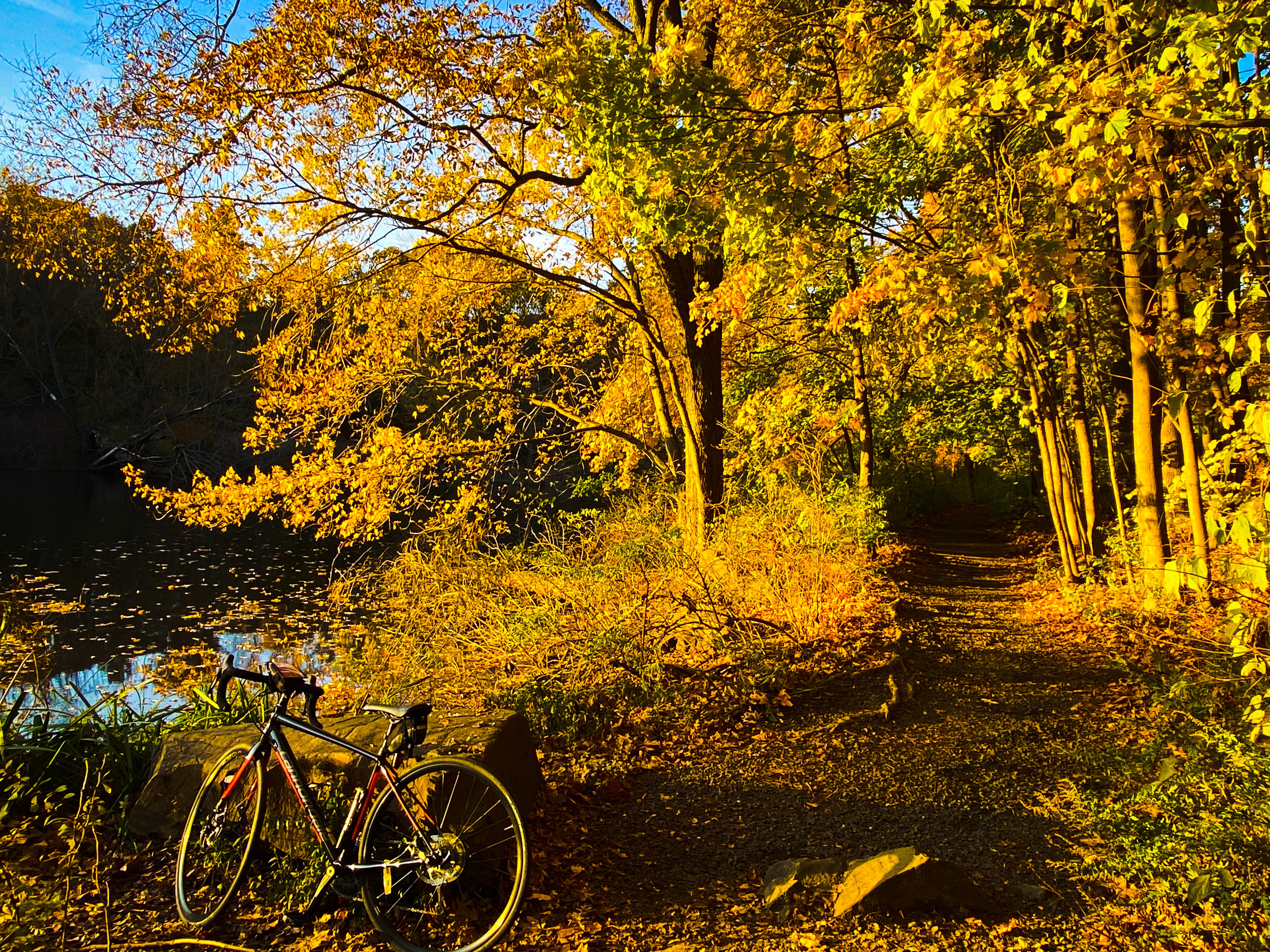 After seeing a kayak on this Mid November afternoon I took my bike to the dirt trails which were very well maintained.
