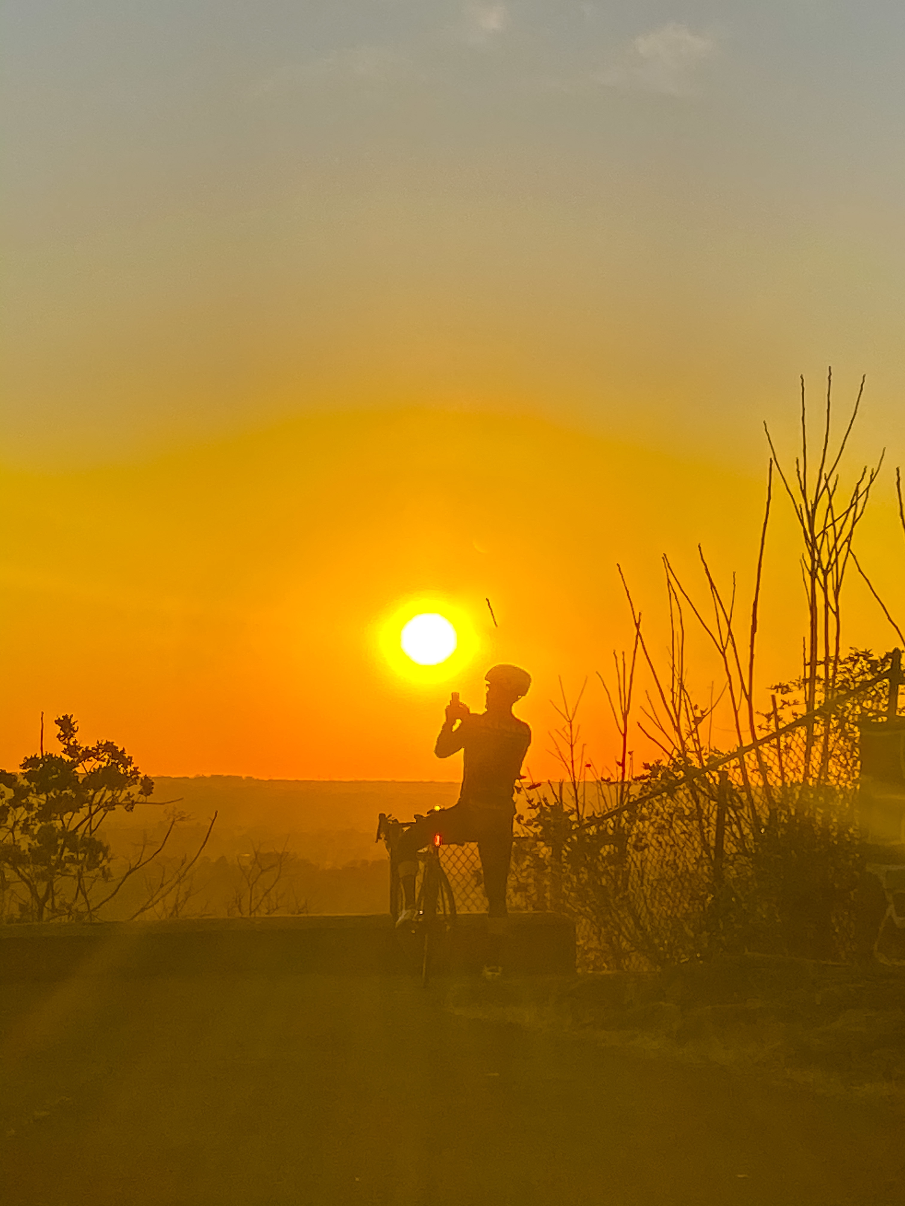 The summit then appears beyond the monument and once again there’s a degree of camaraderie felt that transcends all the potential differences between the people observing. I saw a biker enjoying the sunset and took the below shot with my cell and notwithstanding my disappointment of not having my real camera shared it with the biker. I started running around the summit looking for other objects with which to share the beautiful sunset. The cell did pretty well!!