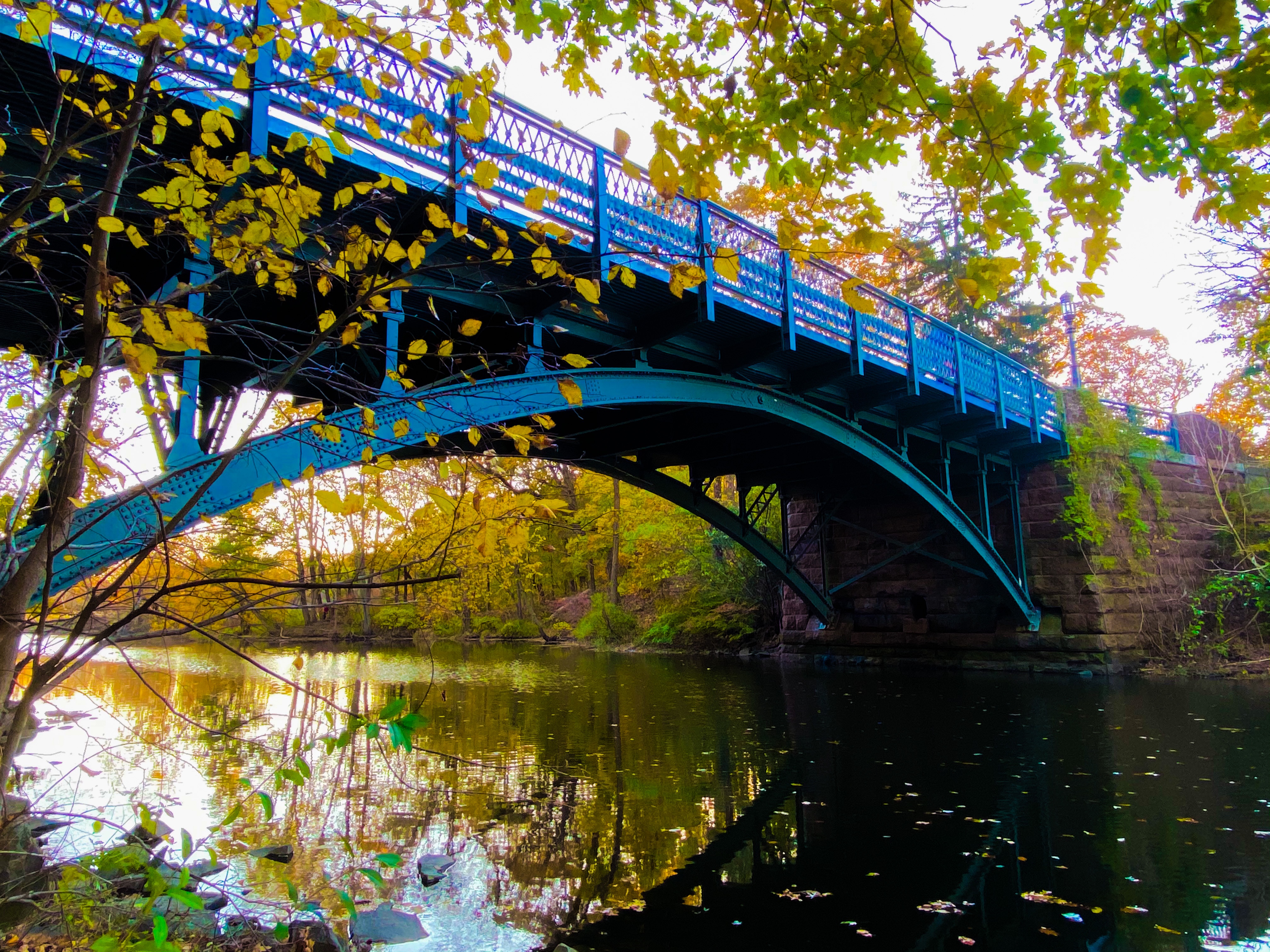 Turns out this park has six different structures that areon the National Register of Historic Places. Built in 1900, East Rock Road Bridge is one of these structures. The bridge recently reopened after a $2.1 million rehabilitation. Below is a link of the history.