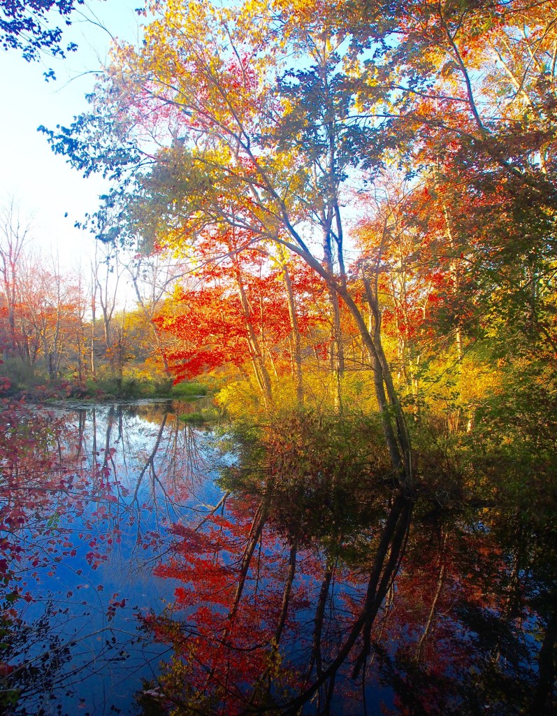 Had I not paused, I would have missed the reflection of transitioning trees in the water. I enjoy having the camera not because I’m so skilled at photography but it gives me increased focus to appreciate what I might see through the lens. I noticed the streaks of red and yellow as I sought to frame the picture in such a way as to pronounce the colors both in the sky and water.