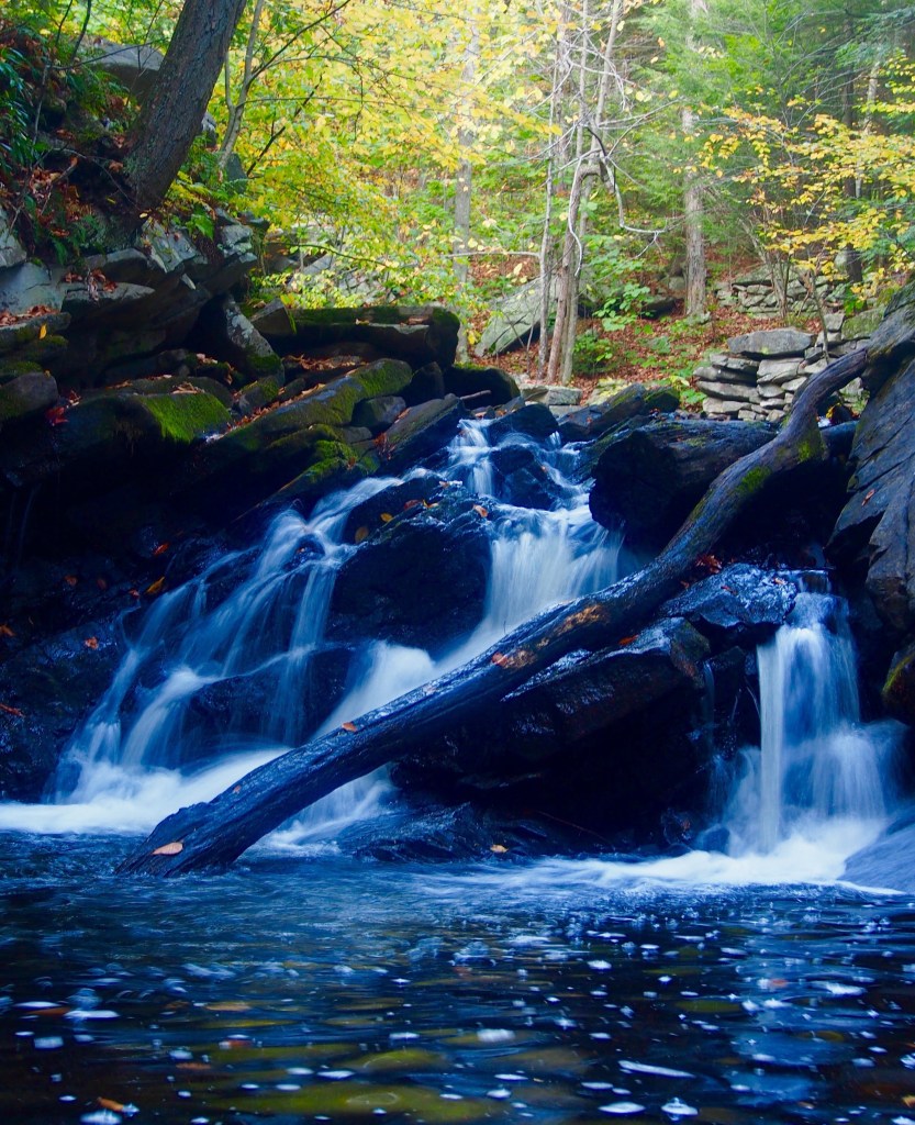 Walking towards the falls you come upon what apparently used to be a local swimming hole. I could envision kids coming here in the heat of the summer to cool down. Fun to envision in my mind’s eye. Rocks divided the swimming hole from the rest of the water where there was a boulder on which to rest.