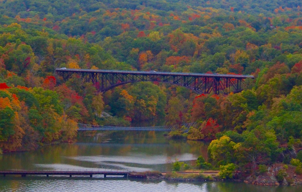 For more difficult but also rewarding hiking, try the Burn and Hardwood Trails, beginning near the Diamond Hill entrance. The former traverses the scene of a forest fire in the mid-1970’s, offering an interesting study in the ecological recovery of a burned area. A steep ascent above a deep ravine leads to the Hardwood Trail, which passes through thick laurel stands and along the base of splendid cliffs, then descends over a rocky path to the river.